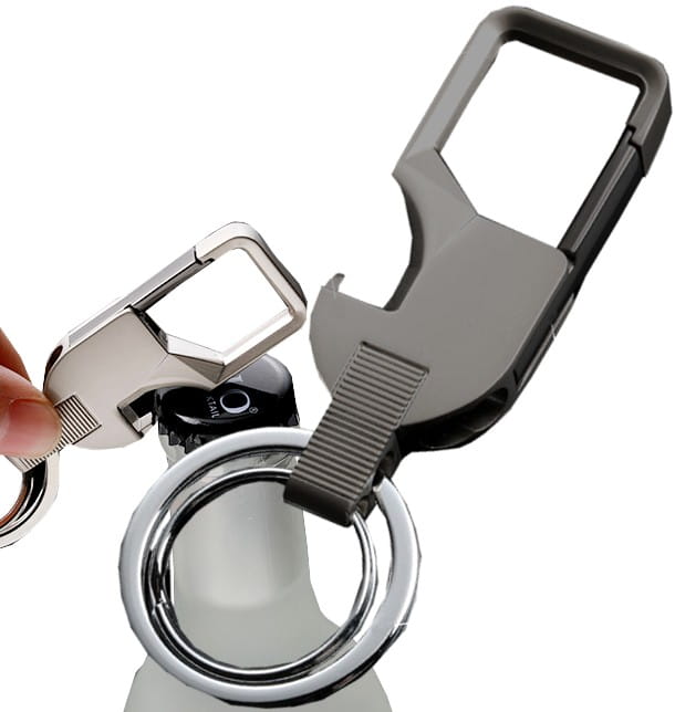 - Karabininė spyna: Įrengta su spyruokle, leidžiančia lengvai pritvirtinti ir nuimti raktus.