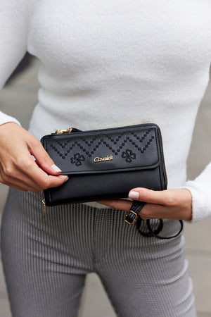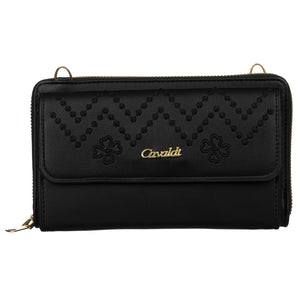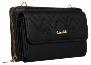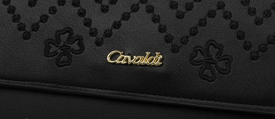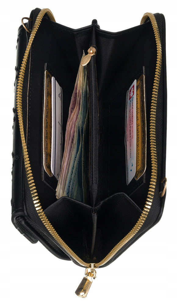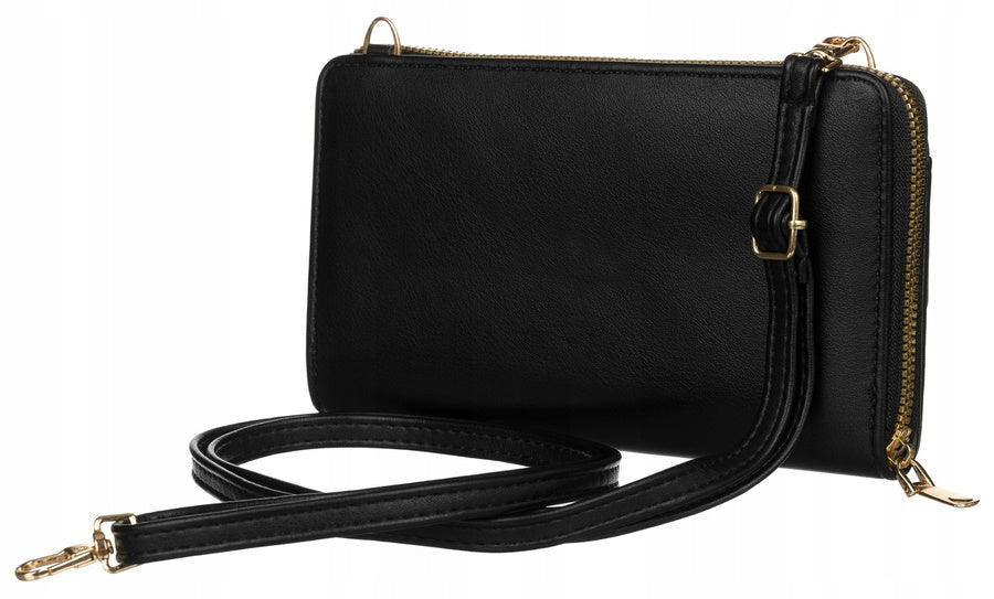4U CAVALDI moteriška rankinė iš ekologiškos odos, juodos spalvos, su užtrauktuku ir klostėmis.
