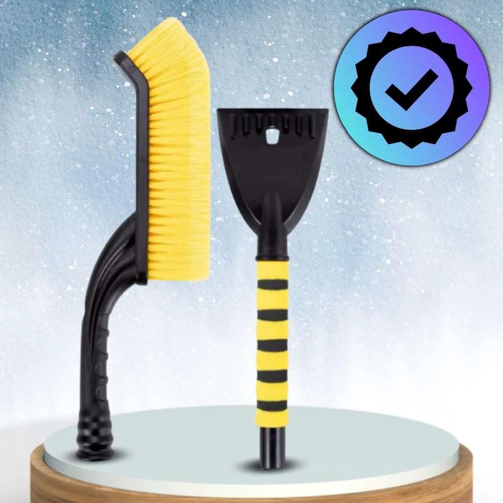 - Kombinuotas įrankis: Sniego šepetys ir langų grandiklis viename.