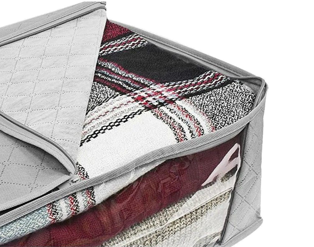 Šis didelis sulankstomas krepšys yra puikus pasirinkimas patalynei, antklodėms, drabužiams, pagalvėms ir striukėms laikyti. Jis efektyviai apsaugo nuo purvo, kandžių ir dulkių.