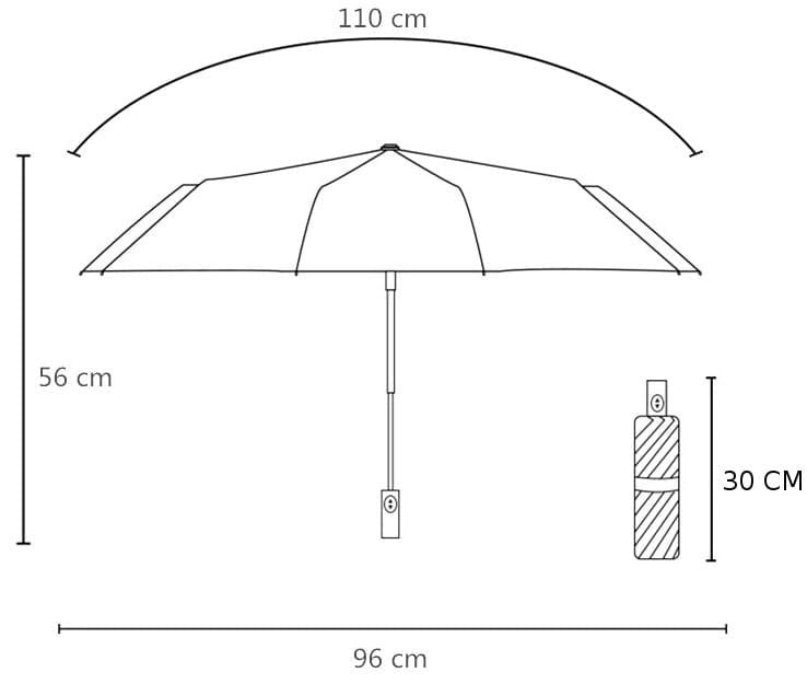 - Lengvas dėklas, skirtas patogiam skėčio transportavimui.