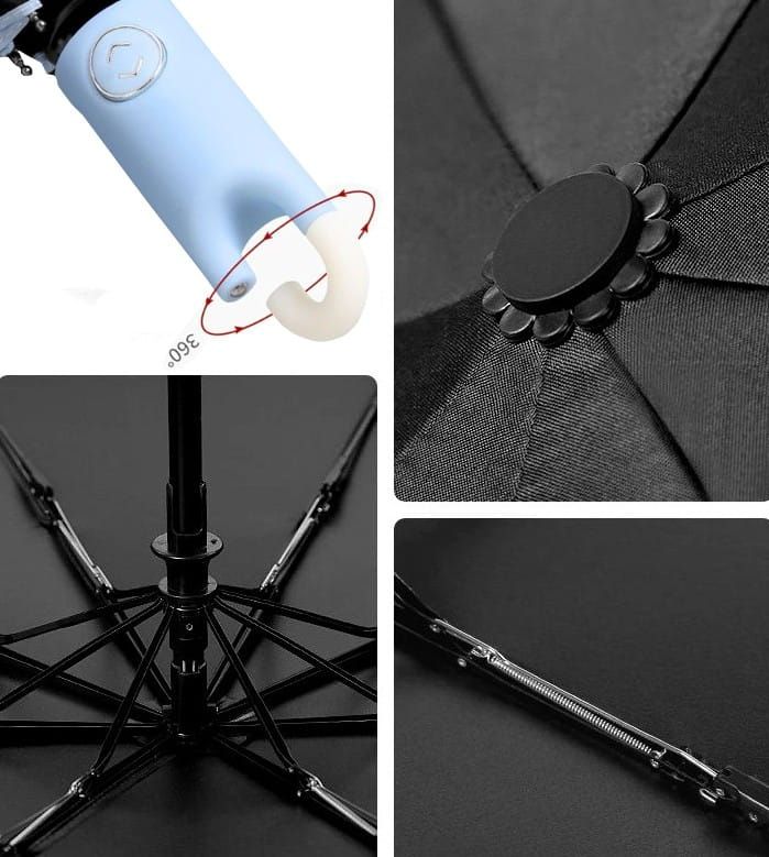 - Specialus mechanizmas su besisukančiu kabliu, leidžiantis skėtį pakabinti bet kur.