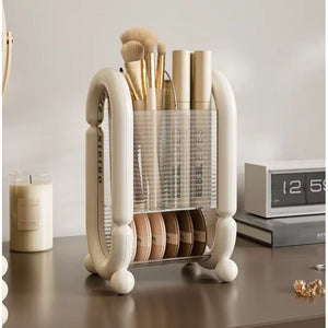 Šis elegantiškas teptukų ir kosmetikos organizatorius ne tik padės palaikyti tvarką, bet ir taps stilinga jūsų kambario detale. Jis puikiai tinka šepetėliams ir įvairiai kosmetikai laikyti, užtikrinant, kad visi smulkūs daiktai būtų savo vietoje.