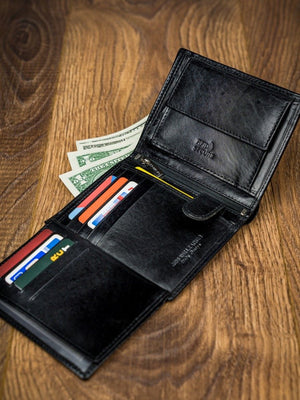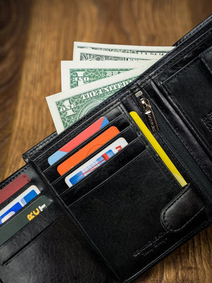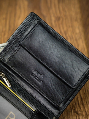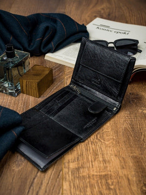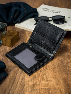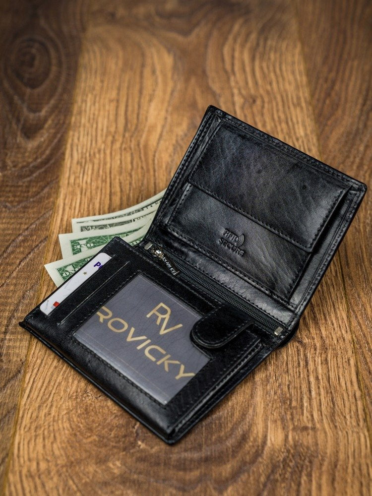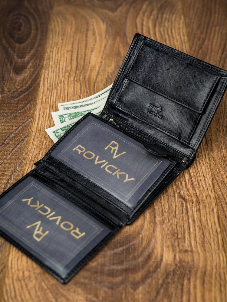 Ši elegantiška vyriška piniginė iš Rovicky kolekcijos yra pagaminta iš aukštos kokybės natūralios odos, kuri užtikrina ilgaamžiškumą ir stilingą išvaizdą. Juoda spalva suteikia klasikinį ir universalų įvaizdį, tinkantį bet kokiai progai.