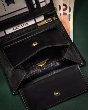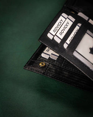 Ši elegantiška vyriška piniginė iš Rovicky yra pagaminta iš aukštos kokybės natūralios odos, kuri užtikrina ilgaamžiškumą ir stilingą išvaizdą.