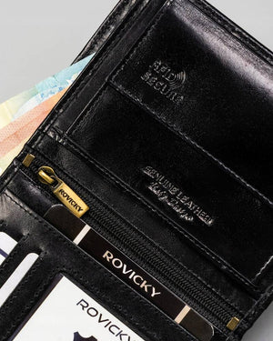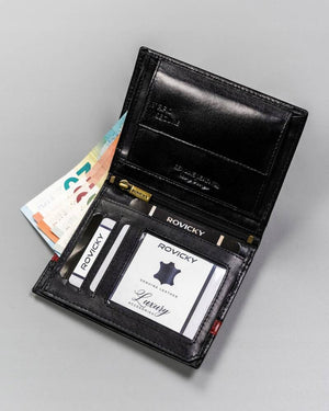 Ši vyriška odinė piniginė Rovicky RV151 yra puikus pasirinkimas tiems, kurie vertina kokybę ir funkcionalumą. Pagaminta iš natūralios odos, ji ne tik atrodo elegantiškai, bet ir yra patvari. Juoda spalva suteikia klasikinį ir universalų stilių, tinkantį bet kokiai progai. Piniginė turi RFID apsaugą, užtikrinančią jūsų kortelių saugumą. Su 6-10 kortelių skyriais, ji suteikia pakankamai vietos visiems jūsų svarbiausiems dokumentams. Dydis yra patogus kasdieniam naudojimui, o išmatavimai 12,5 cm x 9,5 cm x 1,5 cm leidžia lengvai tilpti į kišenę ar krepšį.