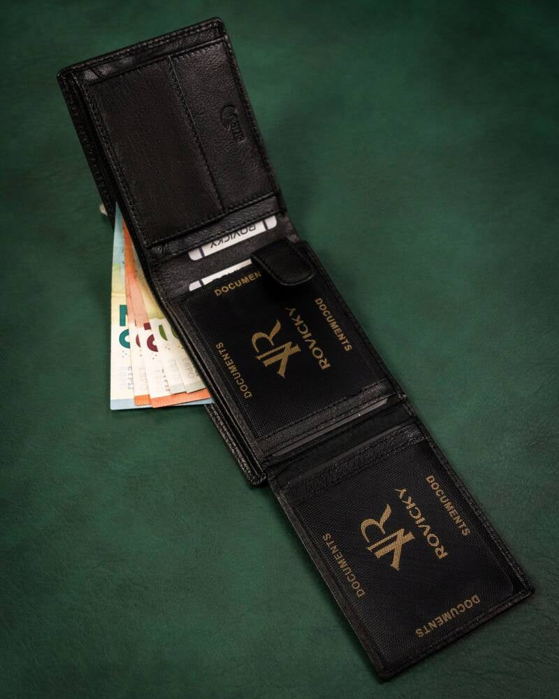Ši elegantiška vyriška piniginė iš Rovicky yra pagaminta iš aukštos kokybės natūralios odos, kuri užtikrina ilgaamžiškumą ir stilingą išvaizdą. Juoda spalva suteikia klasikinį ir universalų įvaizdį, tinkantį bet kokiai progai.
