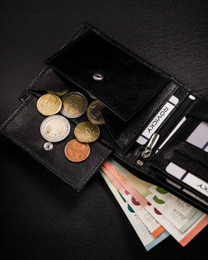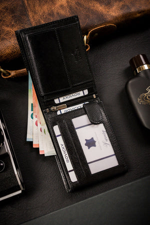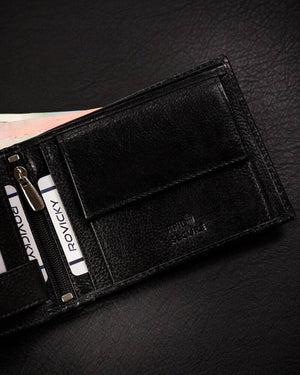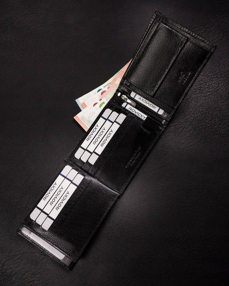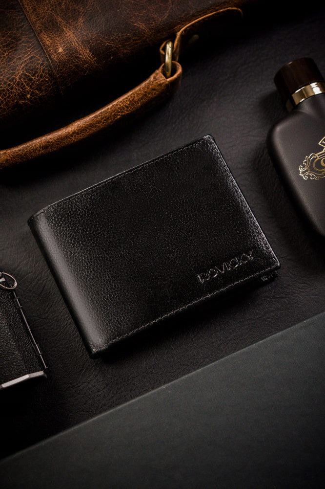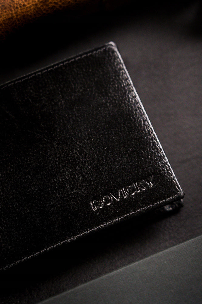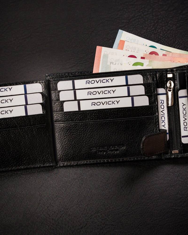 Ši elegantiška vyriška piniginė iš Rovicky yra pagaminta iš aukštos kokybės natūralios odos, kuri užtikrina ilgaamžiškumą ir stilingą išvaizdą. Juoda spalva suteikia klasikinį ir universalų įvaizdį, tinkantį bet kokiai progai.
