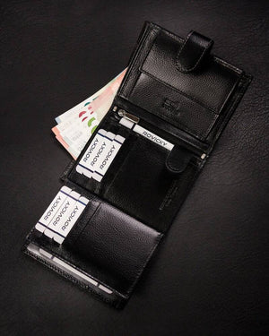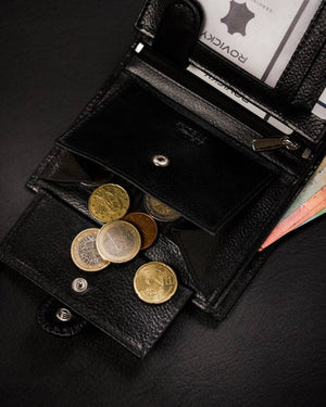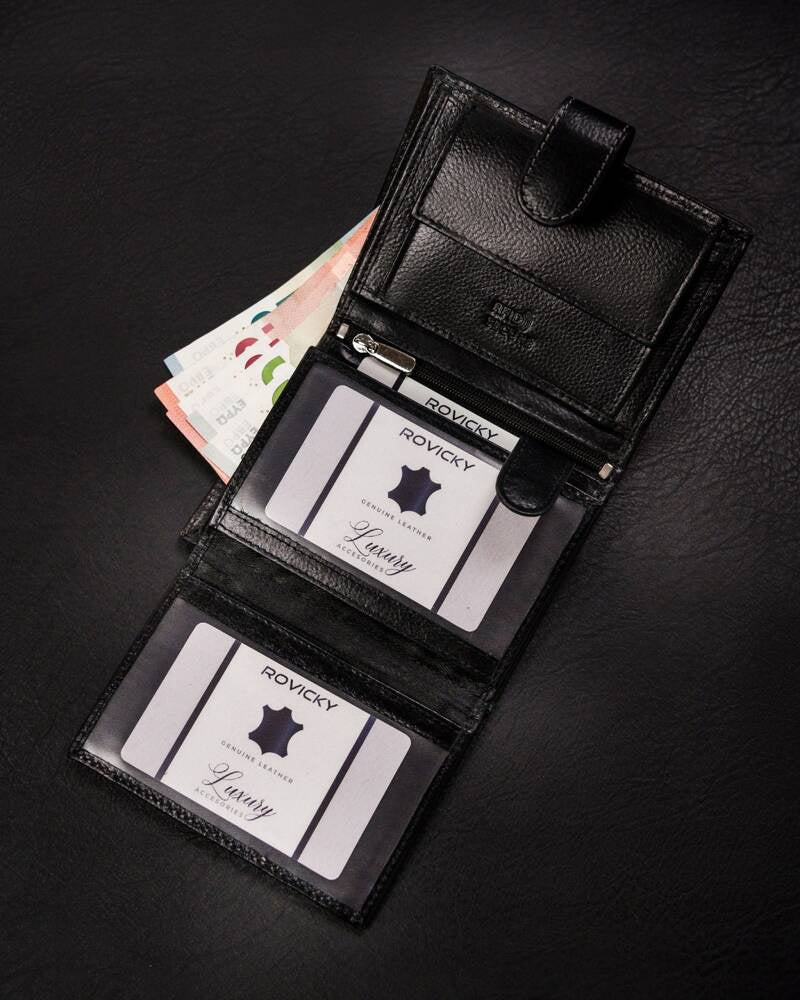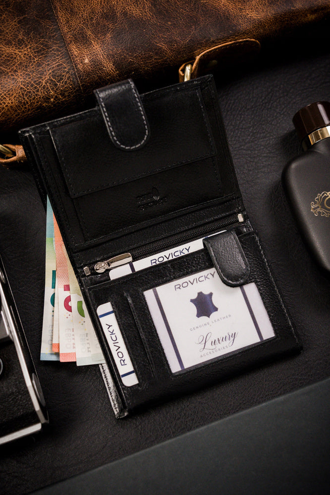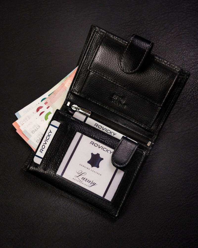 Ši elegantiška vyriška piniginė iš Rovicky yra puikus pasirinkimas tiems, kurie vertina kokybę ir stilių. Pagaminta iš aukštos kokybės natūralios odos, ši piniginė ne tik atrodo prabangiai, bet ir yra ilgaamžė.