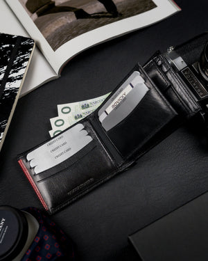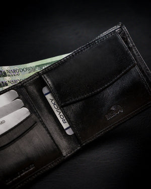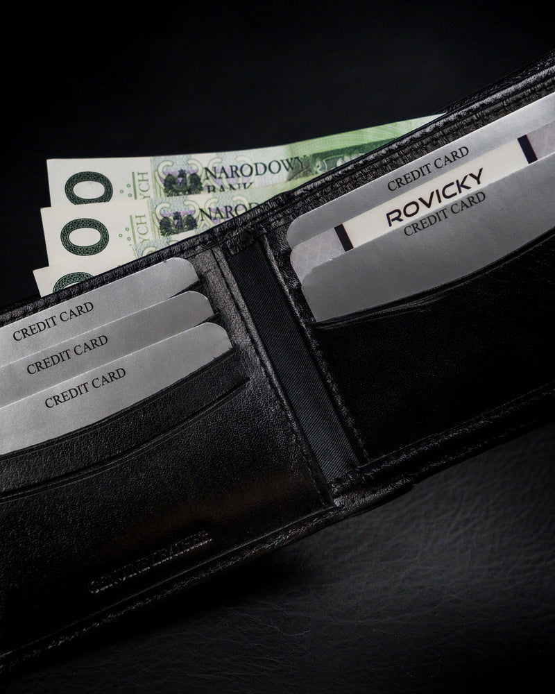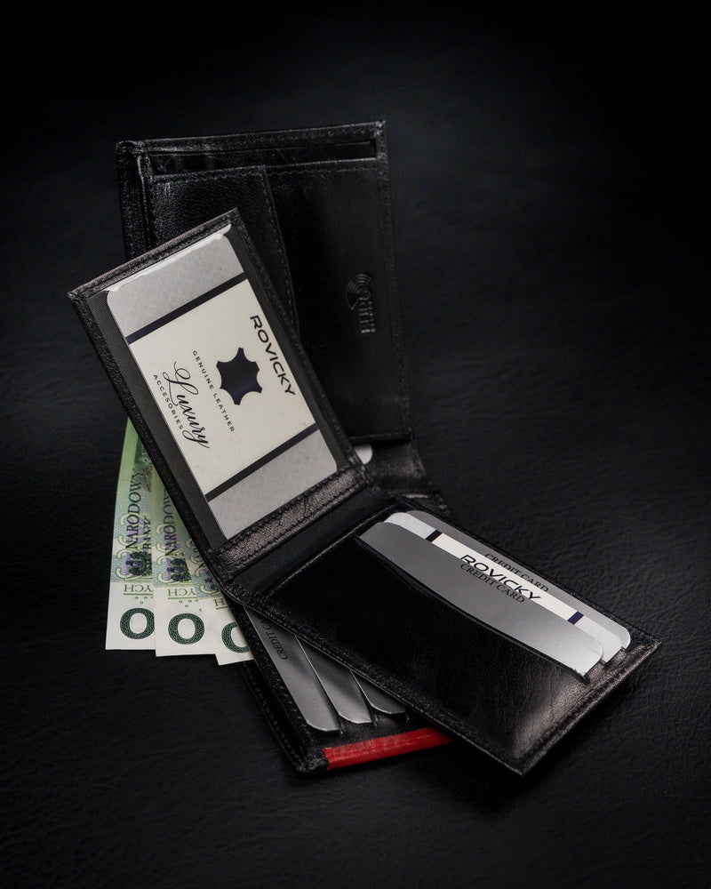 Vyriška odinė piniginė Rovicky RV40 yra elegantiškas ir funkcionalus aksesuaras, pagamintas iš aukštos kokybės natūralios pilno grūdo odos. Juoda spalva suteikia klasikinį ir universalų stilių, tinkantį bet kokiai progai. Piniginė yra didelio dydžio, todėl joje patogiai tilps visos jūsų kortelės ir grynieji pinigai. Daugiau nei 10 kortelių skyrių užtikrina, kad visada turėsite pakankamai vietos. Be to, RFID apsauga padės apsaugoti jūsų asmeninius duomenis nuo neteisėto nuskaitymo. Tai puikus pasirinkimas tiems, kurie vertina kokybę ir saugumą.
