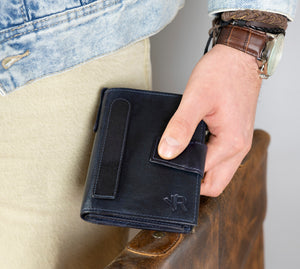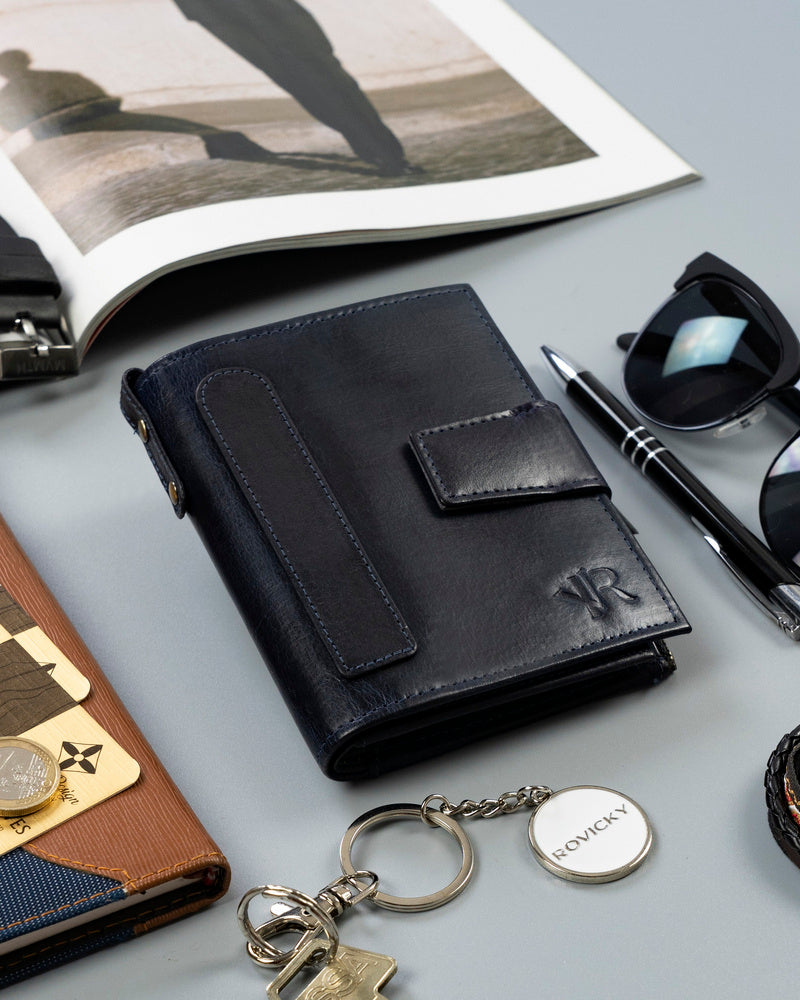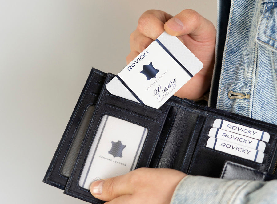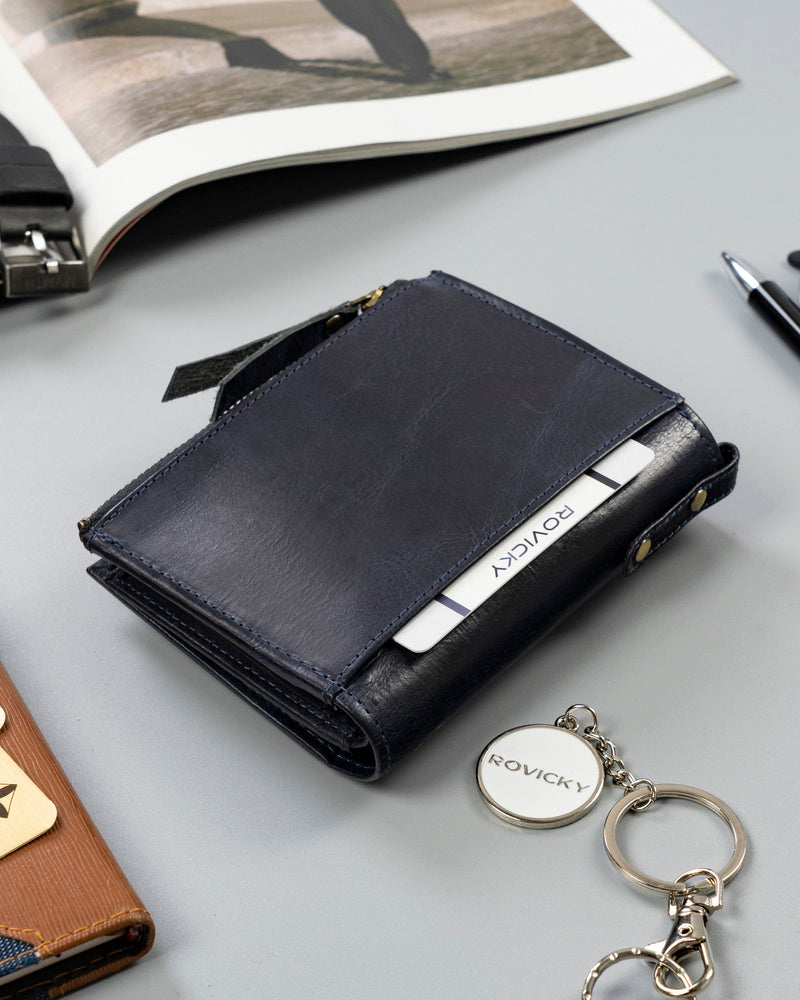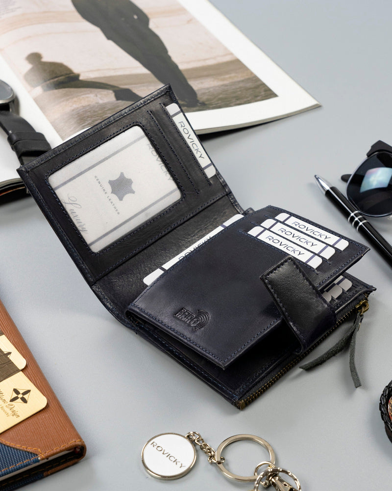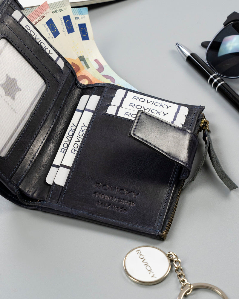 Ši vyriška piniginė iš Rovicky yra pagaminta iš aukštos kokybės natūralios odos, kuri užtikrina ilgaamžiškumą ir eleganciją. Tamsiai mėlyna spalva suteikia piniginei išskirtinumo ir stiliaus.