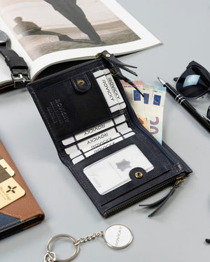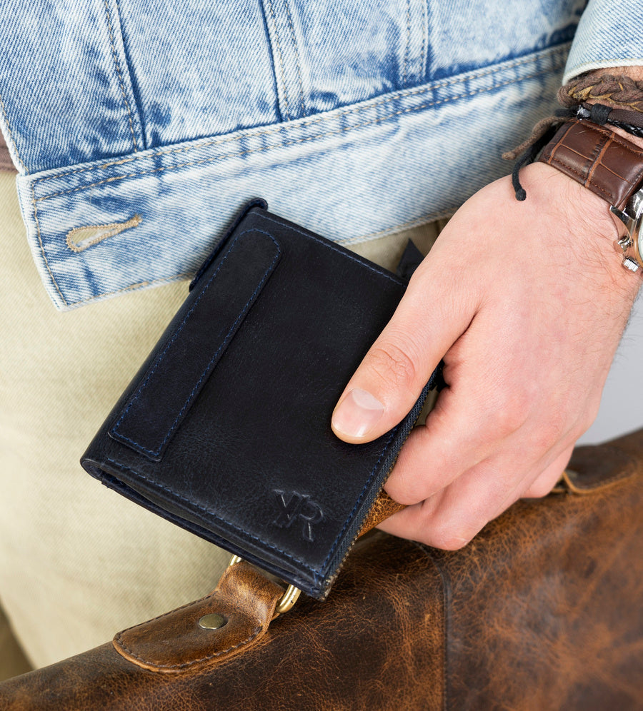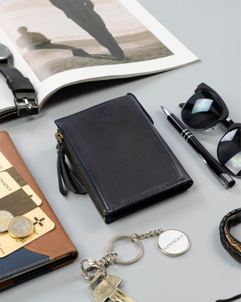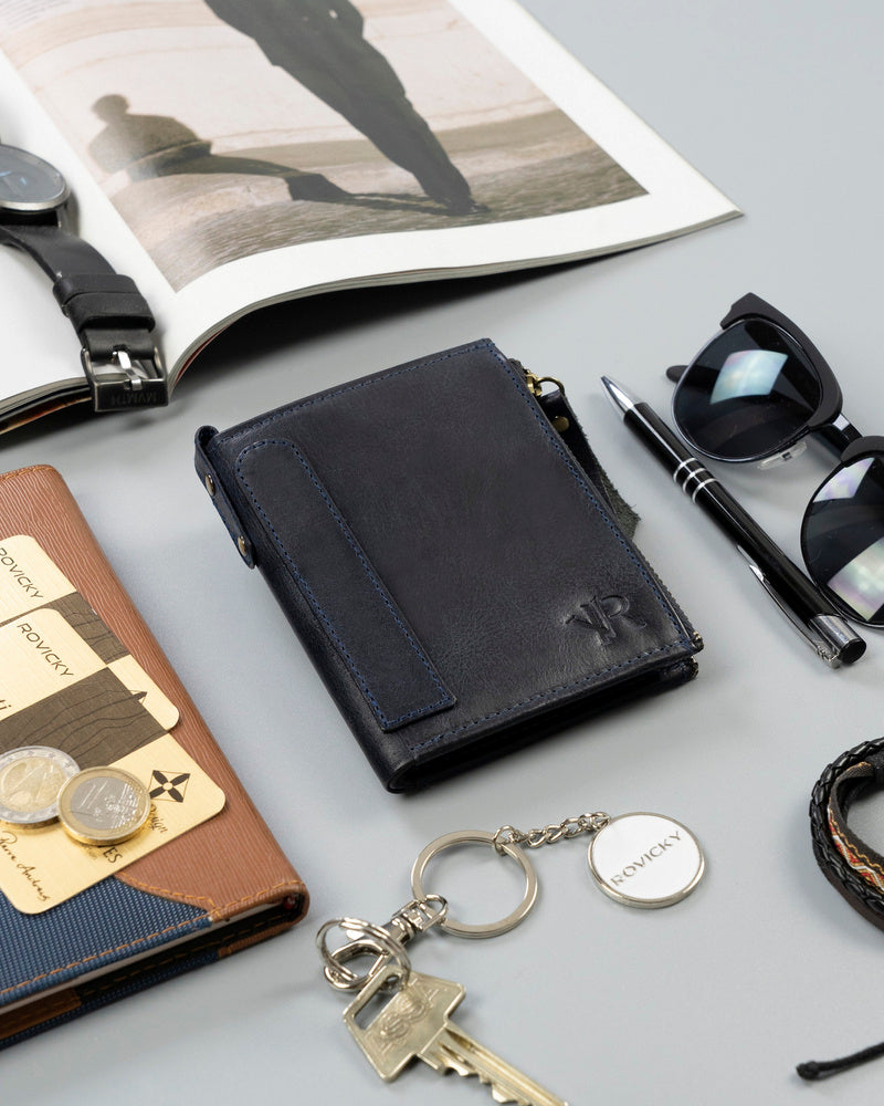 Ši vyriška piniginė iš Rovicky yra pagaminta iš aukštos kokybės natūralios odos, kuri užtikrina ilgaamžiškumą ir eleganciją. Tamsiai mėlyna spalva suteikia piniginei išskirtinumo ir stiliaus.