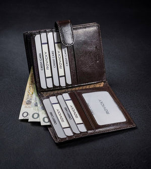 Ši vyriška odinė piniginė Rovicky RV82 yra puikus pasirinkimas tiems, kurie vertina kokybę ir saugumą. Pagaminta iš natūralios odos, ji ne tik atrodo elegantiškai, bet ir yra patvari. Tamsiai ruda spalva suteikia klasikinį ir universalų stilių, tinkantį įvairioms progoms. Vidutinio dydžio piniginė patogiai telpa kišenėje, o RFID apsauga užtikrina jūsų kortelių saugumą nuo nepageidaujamo nuskaitymo.