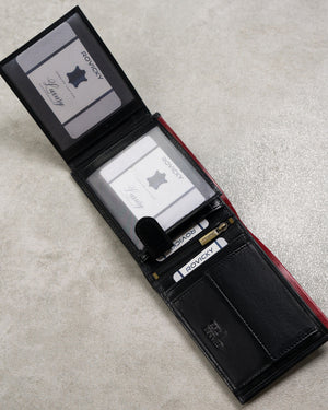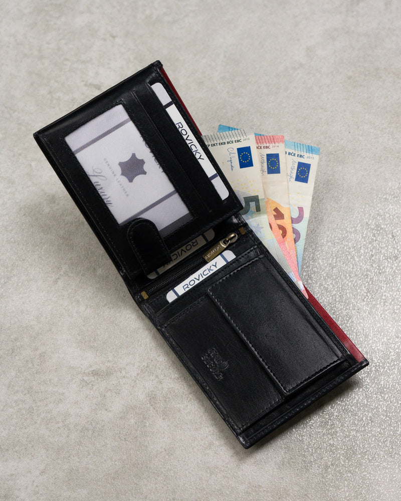 Vyriška odinė piniginė Rovicky RV89 yra elegantiškas ir funkcionalus aksesuaras, pagamintas iš aukštos kokybės natūralios odos. Juoda spalva suteikia klasikinį ir universalų stilių, tinkantį įvairioms progoms. Piniginė turi RFID apsaugą, užtikrinančią jūsų kortelių saugumą. Vidutinio dydžio piniginė patogiai telpa kišenėje, o jos viduje rasite pakankamai skyrių kortelėms ir kitoms smulkmenoms. Tai puikus pasirinkimas tiems, kurie vertina kokybę ir praktiškumą.