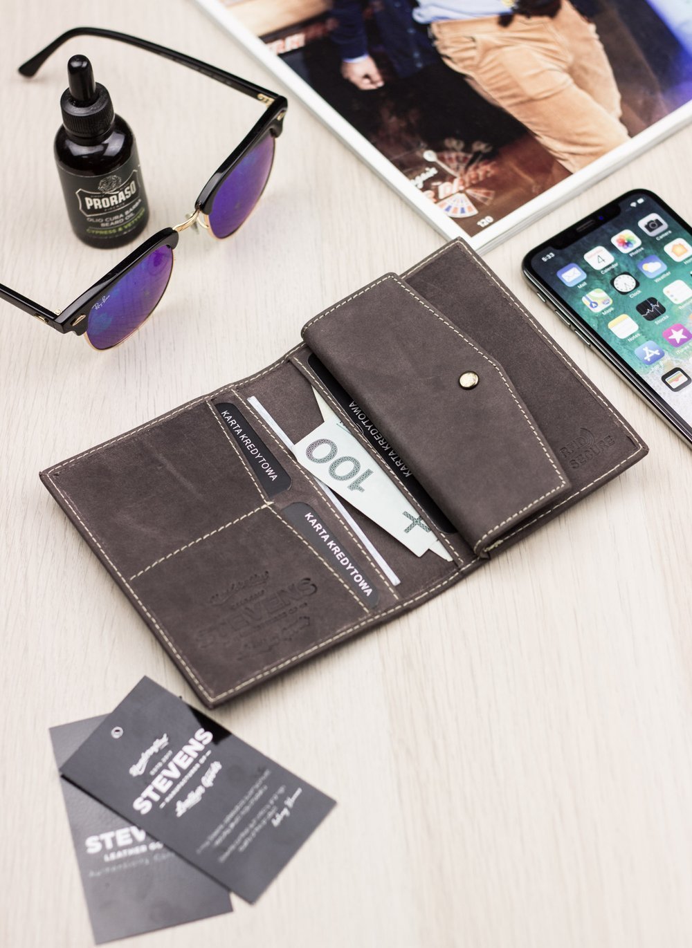 Vyriška odinė piniginė STEVENS RFID su apsauga Plona SLIM S199