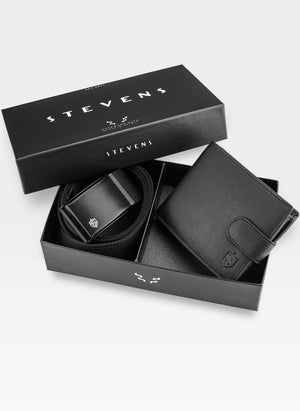 STEVENS® „Atlantis“ vyriškas rinkinys: piniginė + diržas dovanų dėžutėje