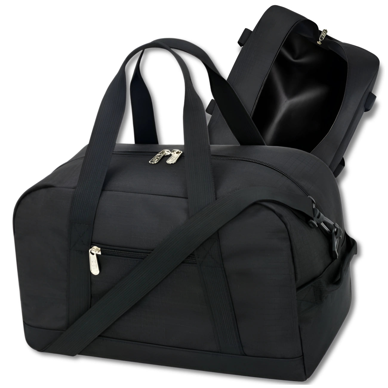 BAD&BAGS – juoda kelioninė rankinė yra modernus dizainas, praktiški sprendimai ir aukšta kokybė. Ideali rankinė tiems, kurie vertina funkcionalumą, patvarumą ir nesenstantį stilių – tiek kasdien, tiek kelionėse. Dėl matmenų 35 x 20 x 20 cm, rankinė atitinka daugumos oro linijų standartus kaip kabinos bagažas.