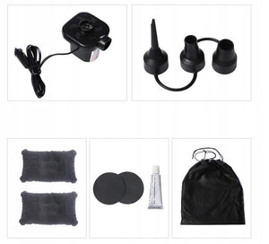 - Pilnas komplektas – čiužinys, pompa, atrama, 2 pagalvės, remonto rinkinys ir laikymo krepšys.