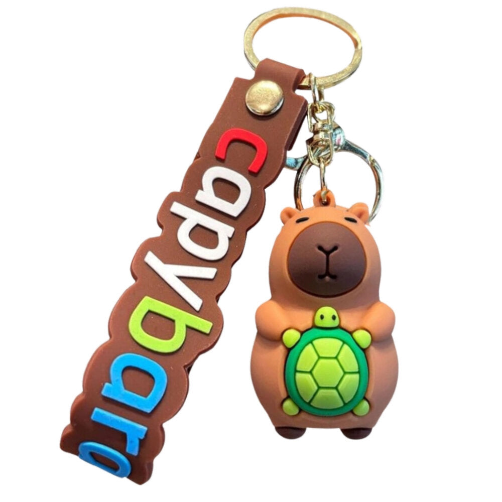 - **Produkto tipas ir paskirtis**: Brelokas su kapibara ir vėžliu, skirtas raktams, kuprinei ar rankinei.
