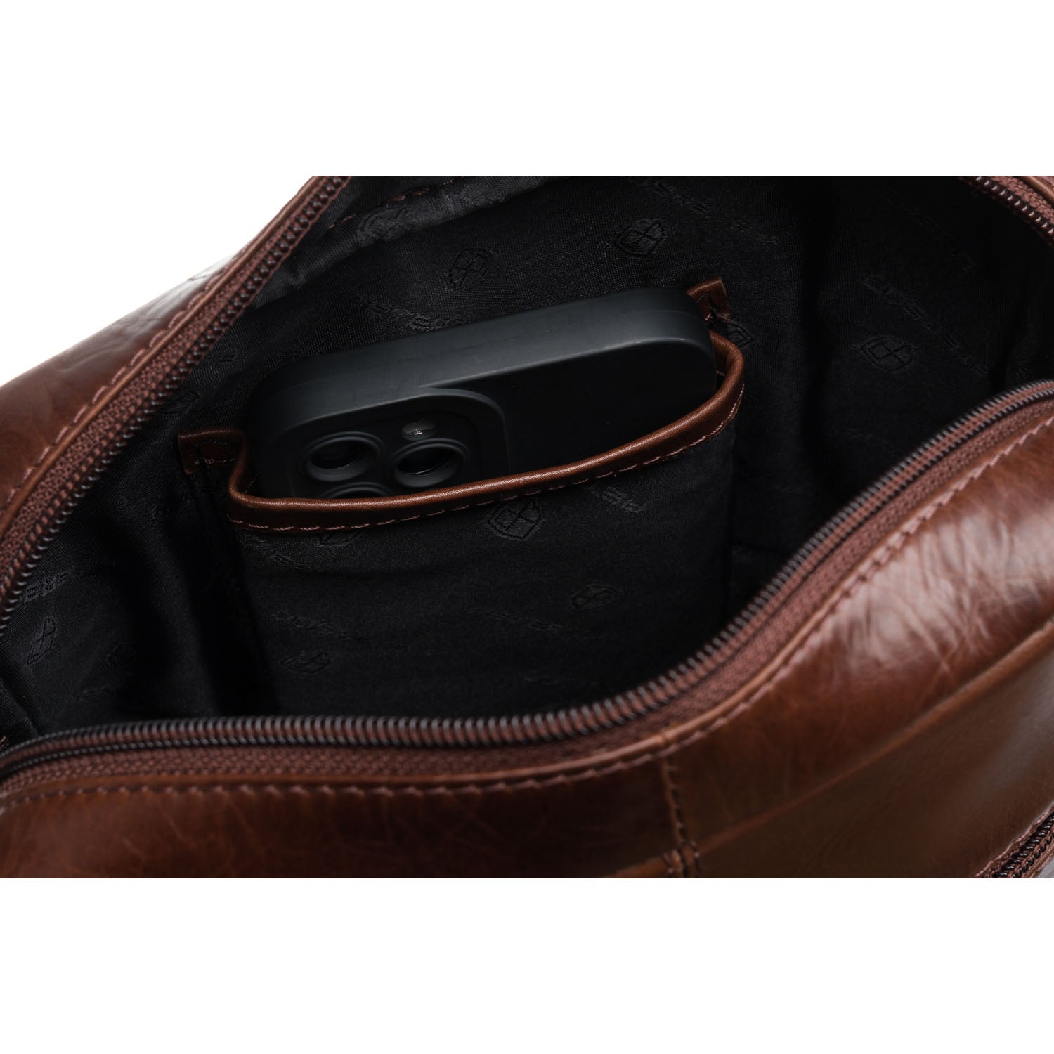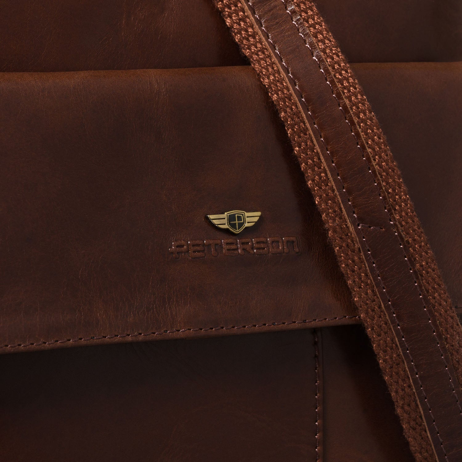 Peterson vyriška rankinė iš natūralios odos, rudos spalvos, su reguliuojamu diržu.