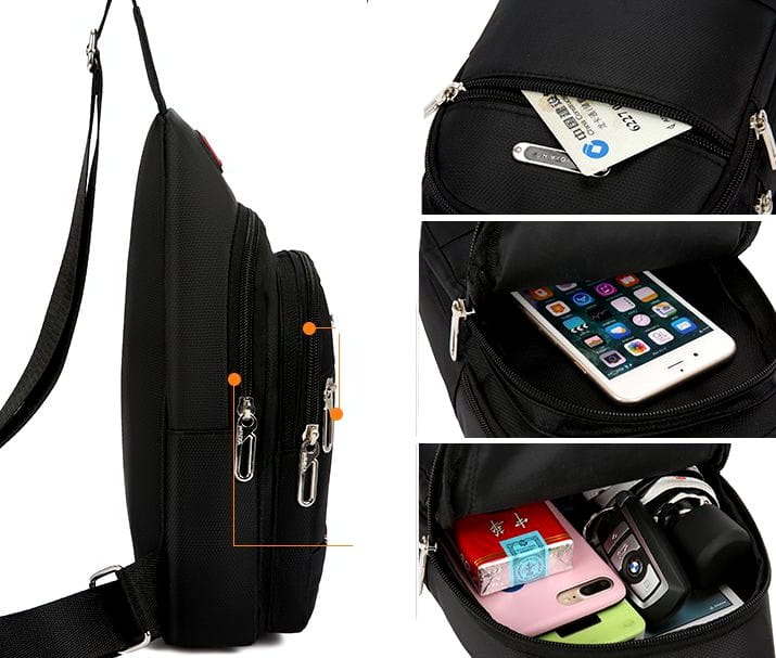 - Skyrių sistema: Pagrindinis skyrius, papildomas skyrius ir kišenė, visi užsegami užtrauktuku, užtikrina saugų turinio laikymą.