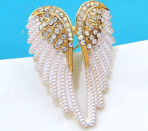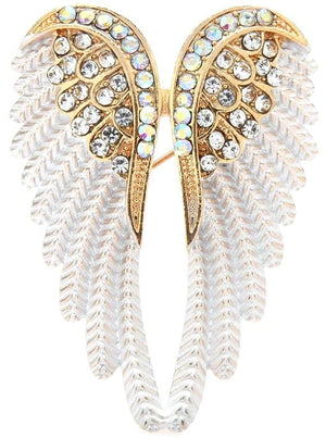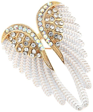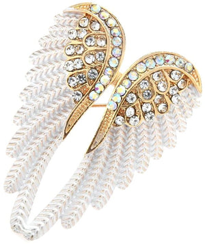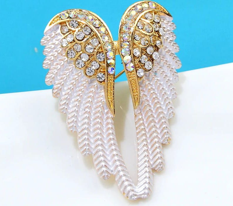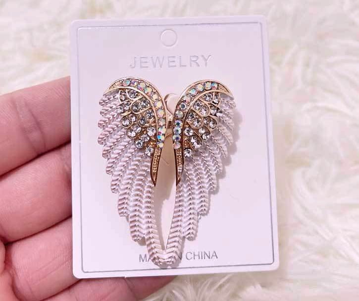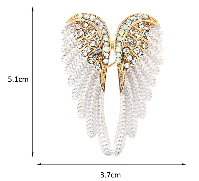 Ši elegantiška balta sagė su sparnais ir cirkoniais yra puikus aksesuaras, suteikiantis stiliaus ir žavesio bet kokiai aprangai. Ji puikiai tinka dėvėti ant suknelės, švarko, kepurės, krepšio ar palto.