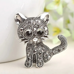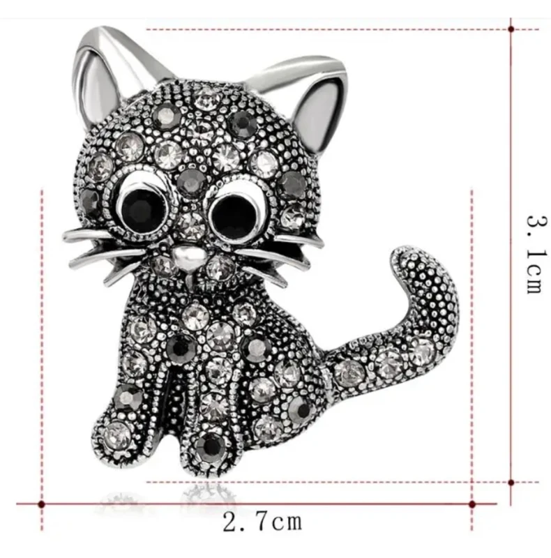 Ši elegantiška juoda katės sagė, dekoruota cirkoniais, yra puikus aksesuaras, kuris suteiks jūsų stiliui elegancijos ir paslaptingumo. Ji puikiai tinka dėvėti su suknelėmis, švarkais, kepurėmis, krepšiais ar paltais.