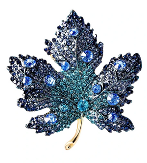 Praturtinkite savo stilių unikaliu aksesuaru – elegantiška mėlyno klevo lapo formos sage, gausiai dekoruota cirkoniais. Ši sagė sujungia eleganciją ir universalumą, puikiai tinka dėvėti ant suknelės, švarko, kepurės, krepšio ar palto.