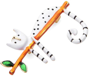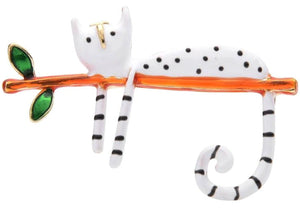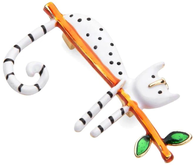 Ši elegantiška sagė su balta kate ant šakos yra puikus aksesuaras, kuris suteiks jūsų aprangai išskirtinumo. Ji puikiai tinka dėvėti ant suknelės, švarko, kepurės, krepšio ar palto, suteikdama stilingą akcentą.