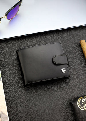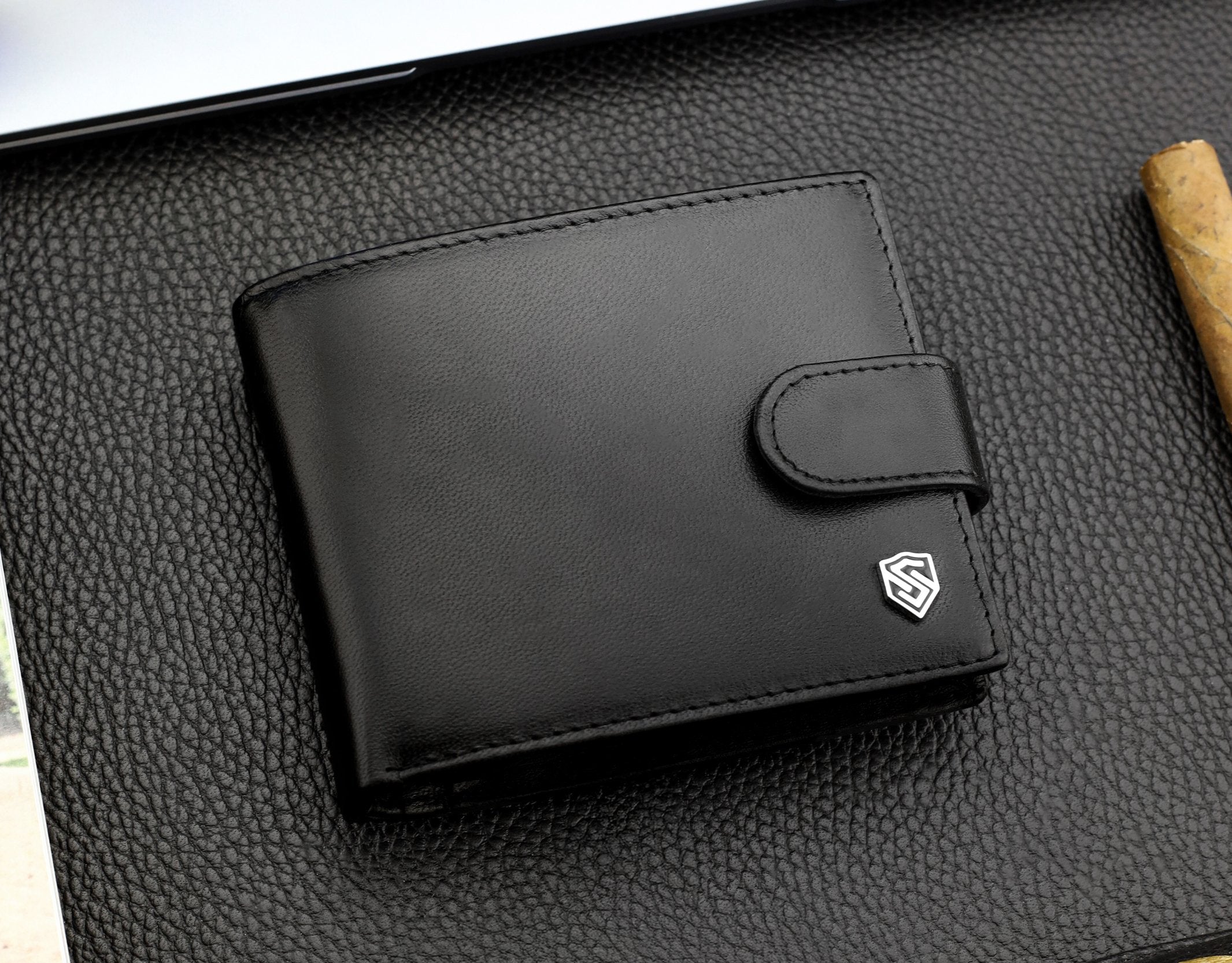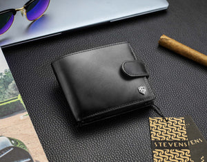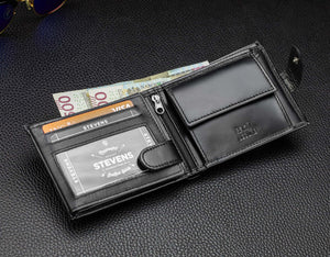 Vyriška odinė piniginė STEVENS® su užsegimu ir RFID apsauga