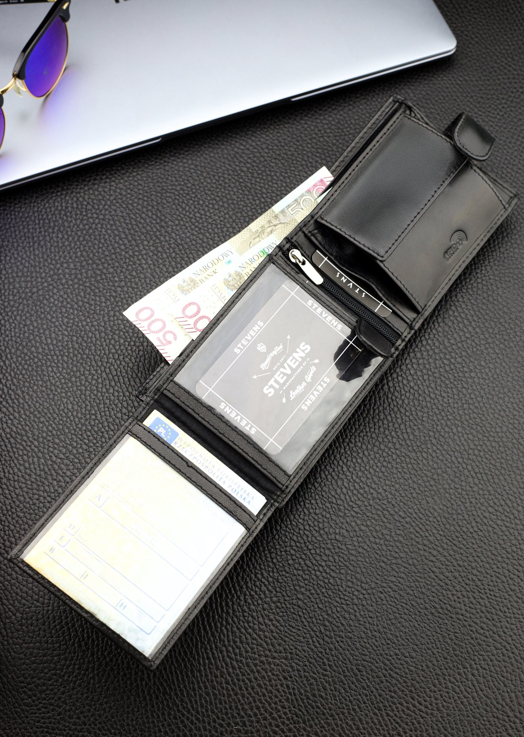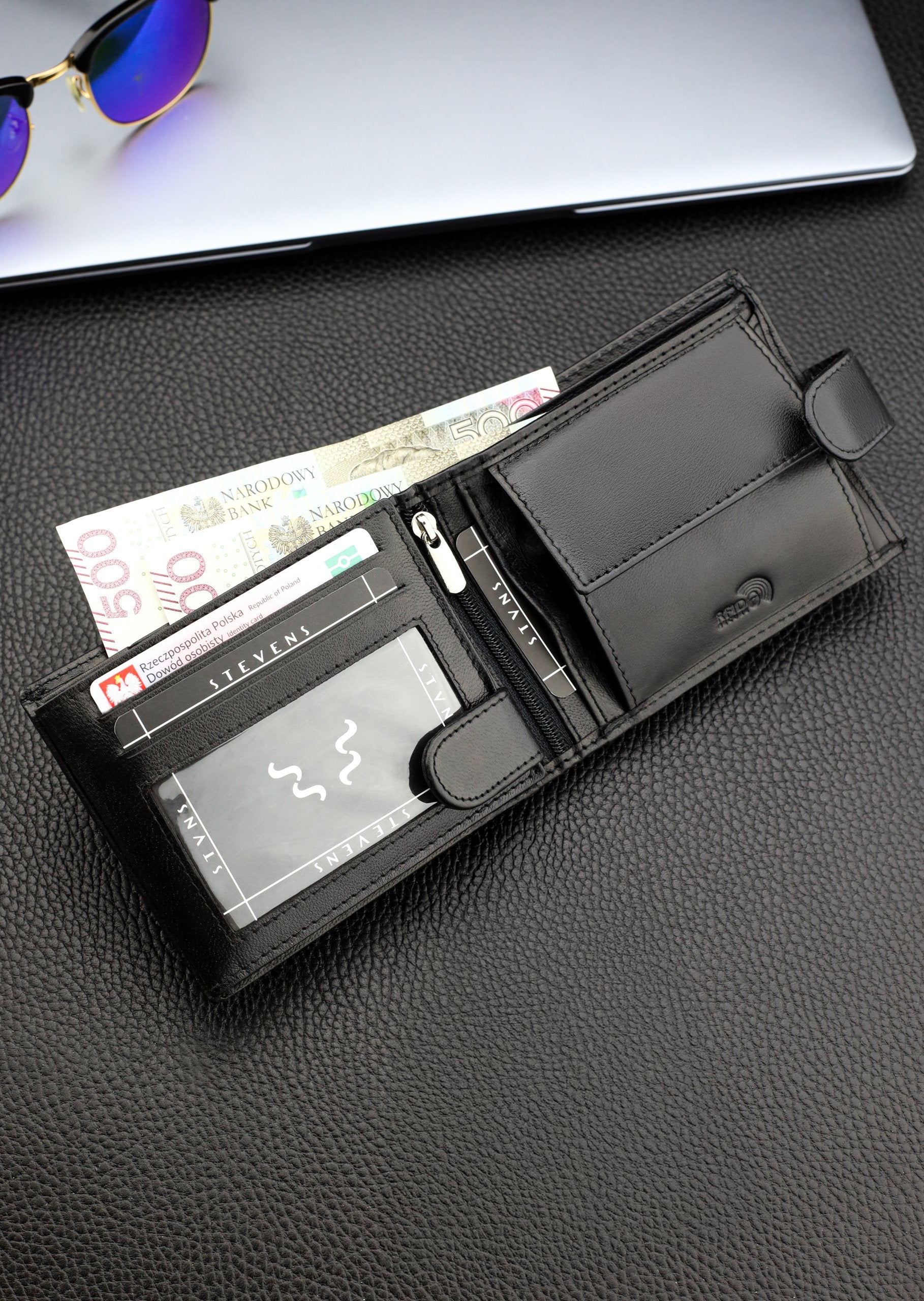 Vyriška odinė piniginė Stevens Z3-325A, juoda S182