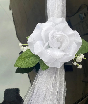 Šios baltos dirbtinės rožės yra puikus pasirinkimas vestuvių ir automobilių dekoravimui. Pagamintos iš aukštos kokybės medžiagų, jos ilgai išlaiko puikią išvaizdą ir suteikia tikrovišką įspūdį.