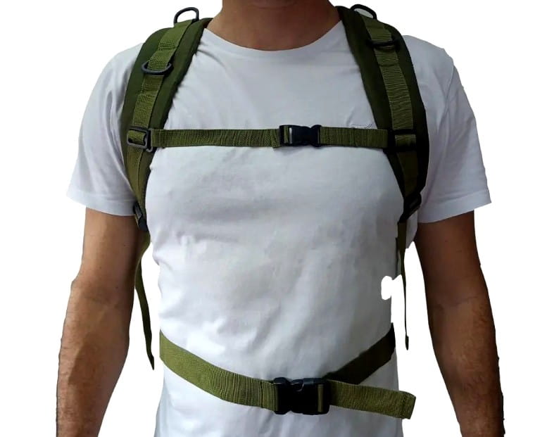 - Daugybė prisiūtų dirželių papildomai įrangai pritvirtinti