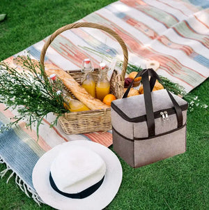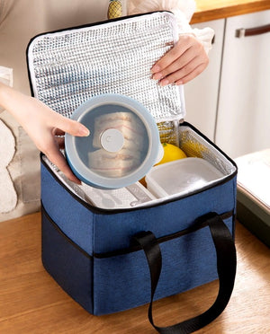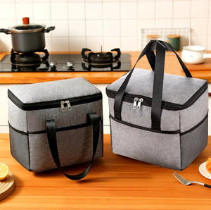 Spalva ir unikalios savybės: Pilkos spalvos dizainas suteikia elegancijos, o dėžutė yra atspari dėmėms ir vandeniui. Užsegama patogiu užtrauktuku, todėl jūsų maistas bus saugus.