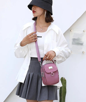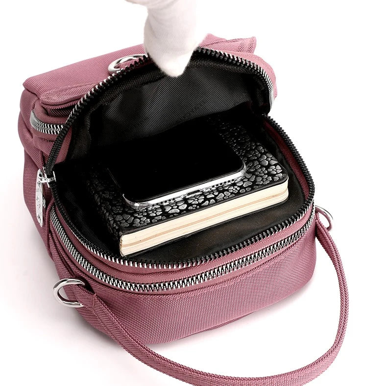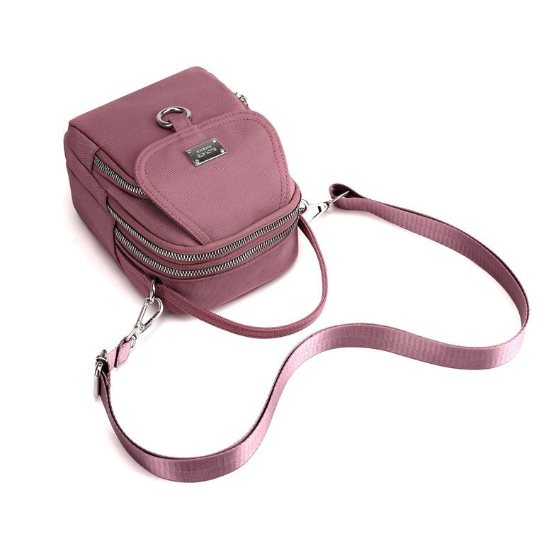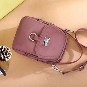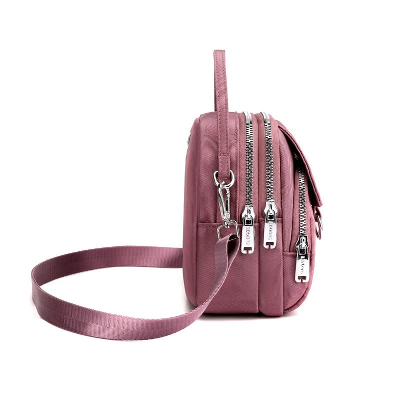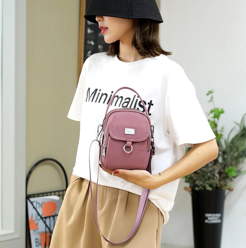Ieškai stilingos ir praktiškos rankinės, kuri vienu metu būtų ir telefoninė dėklas, ir piniginė? Ši rožinė mini rankinė su 3 užsegamomis kišenėmis ir reguliuojamu dirželiu – tai tobulas pasirinkimas aktyvioms, stilingoms moterims.