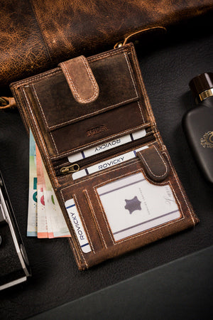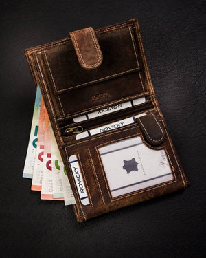 Ši elegantiška ir funkcionali piniginė yra puikus pasirinkimas vyrams, vertinantiems kokybę ir saugumą. Pagaminta iš natūralios zomšos ir nubuko odos, ji ne tik atrodo stilingai, bet ir užtikrina ilgaamžiškumą. Šviesiai ruda spalva suteikia klasikinį ir universalų įvaizdį, tinkantį įvairioms progoms. Didelis dydis leidžia patogiai laikyti visus reikalingus daiktus, o RFID apsauga saugo jūsų korteles nuo nepageidaujamo nuskaitymo. Su 6-10 kortelių skyriais, ši piniginė yra praktiška ir patogi kasdieniam naudojimui.