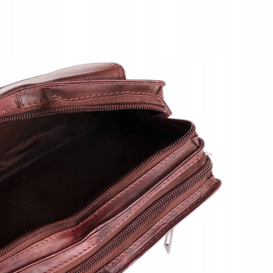 Delninė iš dirbtinės odos, rudos spalvos, su dviem skyriais ir dviem kišenėmis.