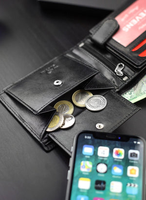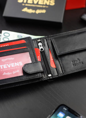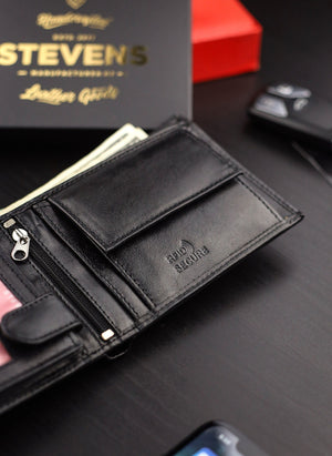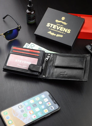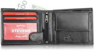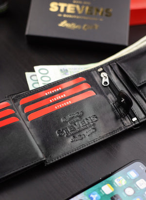 STEVENS® vyriška odinė piniginė, juoda, horizontali, RFID Q2 – natūrali oda