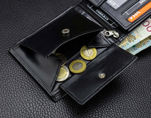 Piniginės konstrukcijoje integruotas sluoksnis padeda apsaugoti bekontaktes korteles nuo nepageidaujamo nuskaitymo, kol jos laikomos piniginėje.
