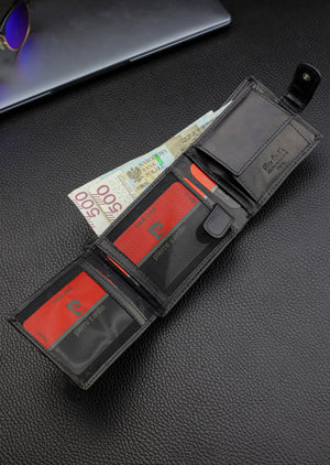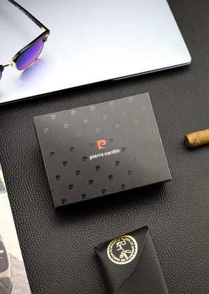 PIERRE CARDIN • Vyriška piniginė Q3 (juoda) • natūrali oda • HORIZONTALI • RFID Secure