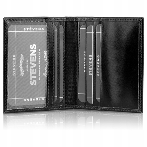 Pagamintas iš natūralios lygios odos su lengvu blizgesiu. Viduje – 6 vietos kortelėms ir dokumentams, įskaitant 1 permatomą kišenę. Priekyje – Stevens® logotipas.
