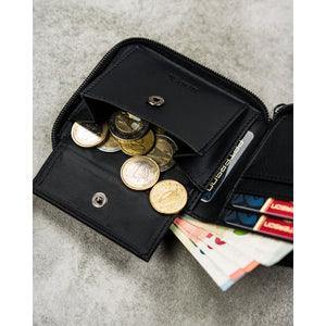 - Užsegama užtrauktuku, su užsegama kišene monetoms.