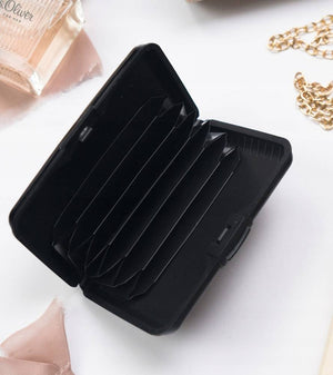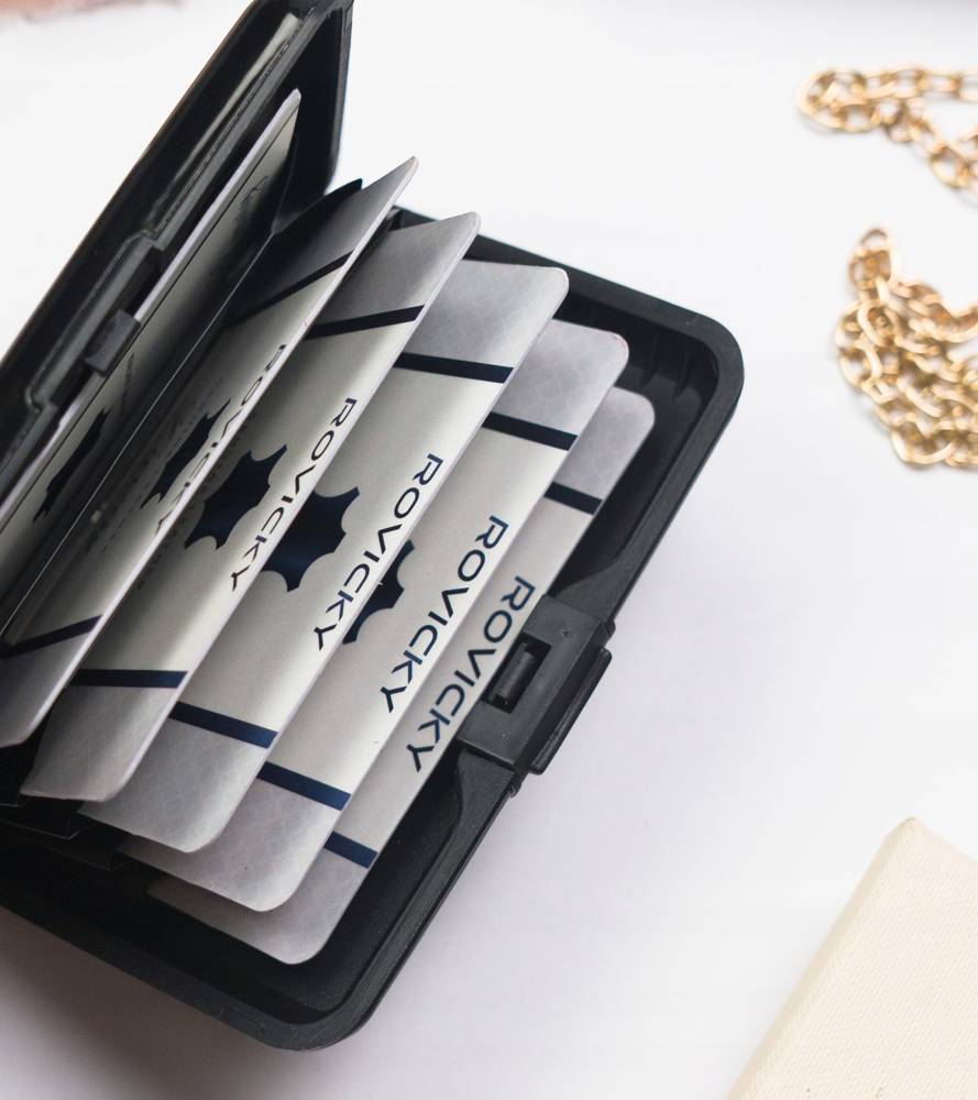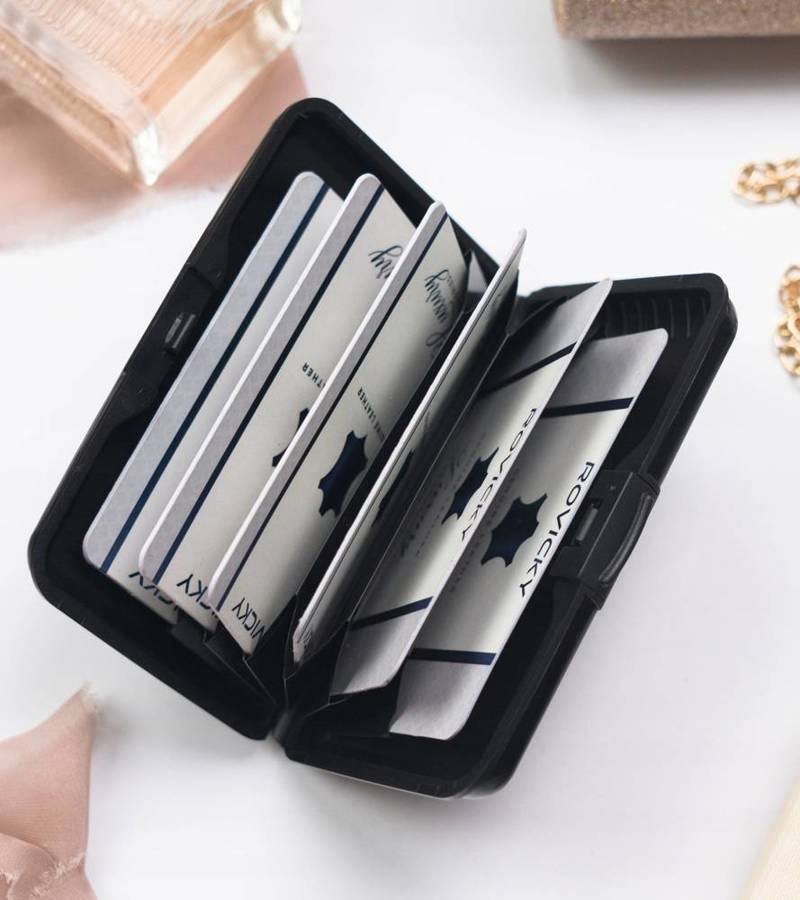 Šis modernus kortelių dėklas pasižymi stilingu dizainu ir yra pagamintas iš aukštos kokybės aliuminio. Jis užtikrina jūsų kortelių ir dokumentų saugumą, nes efektyviai blokuoja RFID skaitytuvų signalus.