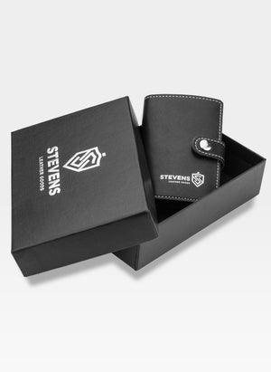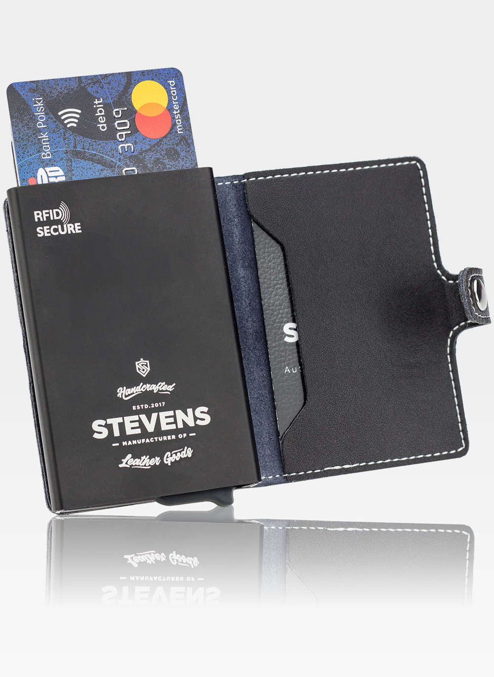 STEVENS mini piniginė yra kompaktiška ir plona, tačiau itin funkcionali. Ji turi specialią STOP RFID apsaugą, kuri apsaugo jūsų korteles nuo nepageidaujamo nuskaitymo ir duomenų vagystės.