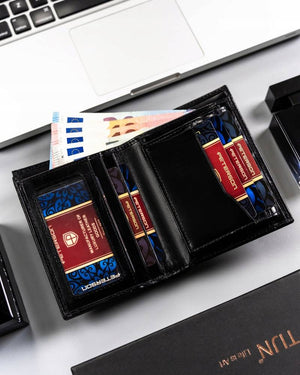 Ši elegantiška ir funkcionali piniginė yra puikus pasirinkimas vyrams, vertinantiems kokybę ir saugumą. Pagaminta iš natūralios odos, ji užtikrina ilgaamžiškumą ir stilingą išvaizdą. Juoda spalva suteikia universalumo, todėl piniginė puikiai tiks prie bet kokio stiliaus. Dėl didelio dydžio ir daugiau nei 10 kortelių skyrių, ji patogiai talpina visus jūsų svarbiausius daiktus. Be to, integruota RFID apsauga padės apsaugoti jūsų korteles nuo nepageidaujamo nuskaitymo.