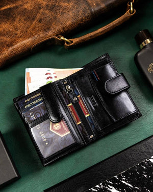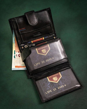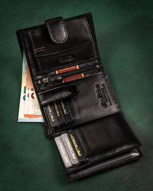 Ši elegantiška ir funkcionali piniginė yra puikus pasirinkimas vyrams, vertinantiems kokybę ir saugumą. Pagaminta iš natūralios odos, ji ne tik atrodo prabangiai, bet ir yra ilgaamžė. Juoda spalva suteikia universalumo, todėl piniginė puikiai tiks bet kokiai progai. Dėl didelio dydžio ir daugiau nei 10 kortelių skyrių, ji patenkins visus jūsų poreikius. Be to, integruota RFID apsauga užtikrina jūsų kortelių duomenų saugumą.