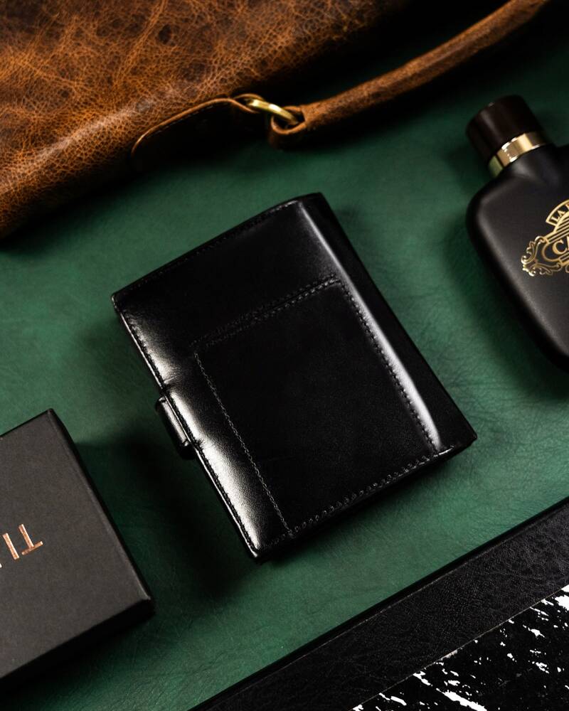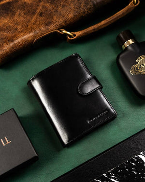 Ši elegantiška juoda piniginė, pagaminta iš aukštos kokybės natūralios odos, yra puikus pasirinkimas vyrams, vertinantiems stilių ir funkcionalumą. Jos dizainas užtikrina patogų naudojimą ir ilgaamžiškumą.