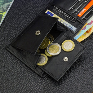 STEVENS® vyriška piniginė pagaminta iš aukštos kokybės natūralios odos, sukurta vyrams, kurie vertina eleganciją, patogumą ir saugumą. SLIM dizainas užtikrina, kad piniginė patogiai tilps kišenėje ir neišsipūs.
