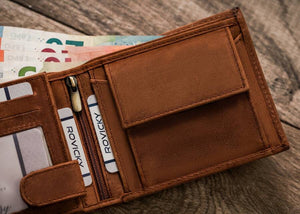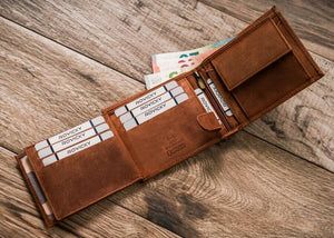 Ši elegantiška ir funkcionali piniginė yra puikus pasirinkimas vyrams, vertinantiems kokybę ir stilių. Pagaminta iš natūralios zomšos ir nubuko odos, ji užtikrina ilgaamžiškumą ir patogumą. Šviesiai ruda spalva suteikia klasikinį ir universalų įvaizdį, tinkantį įvairioms progoms. Piniginė turi RFID apsaugą, kuri padeda apsaugoti jūsų korteles nuo nepageidaujamo nuskaitymo. Su 6-10 kortelių skyriais, ji yra pakankamai talpi, kad sutalpintų visus jūsų svarbiausius dokumentus ir korteles.