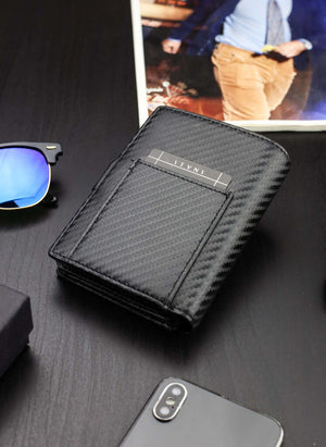 Vyriška odinė piniginė Stevens Carbon, juoda